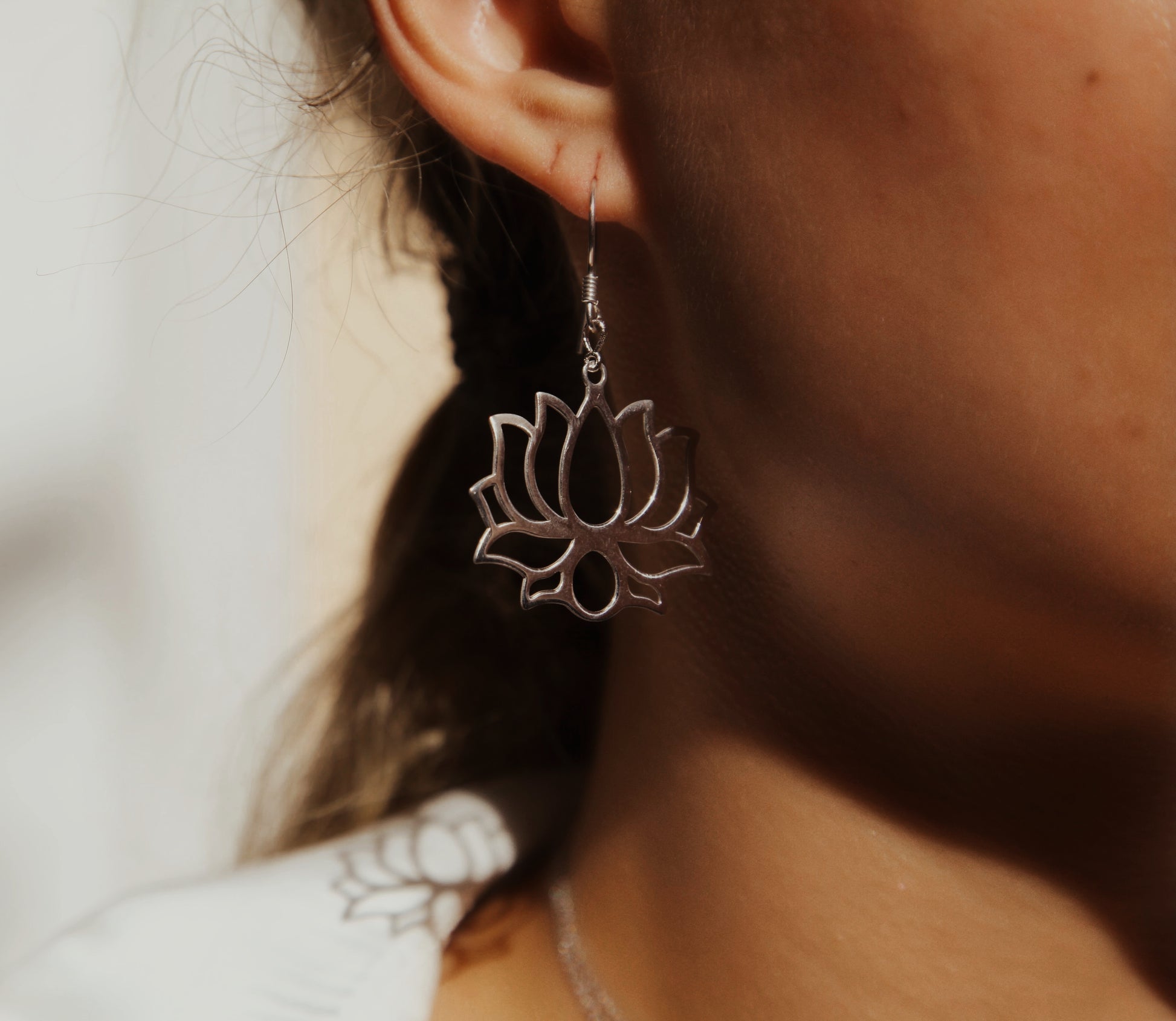 Elevate your everyday look with these Lotus dangle silver earrings.